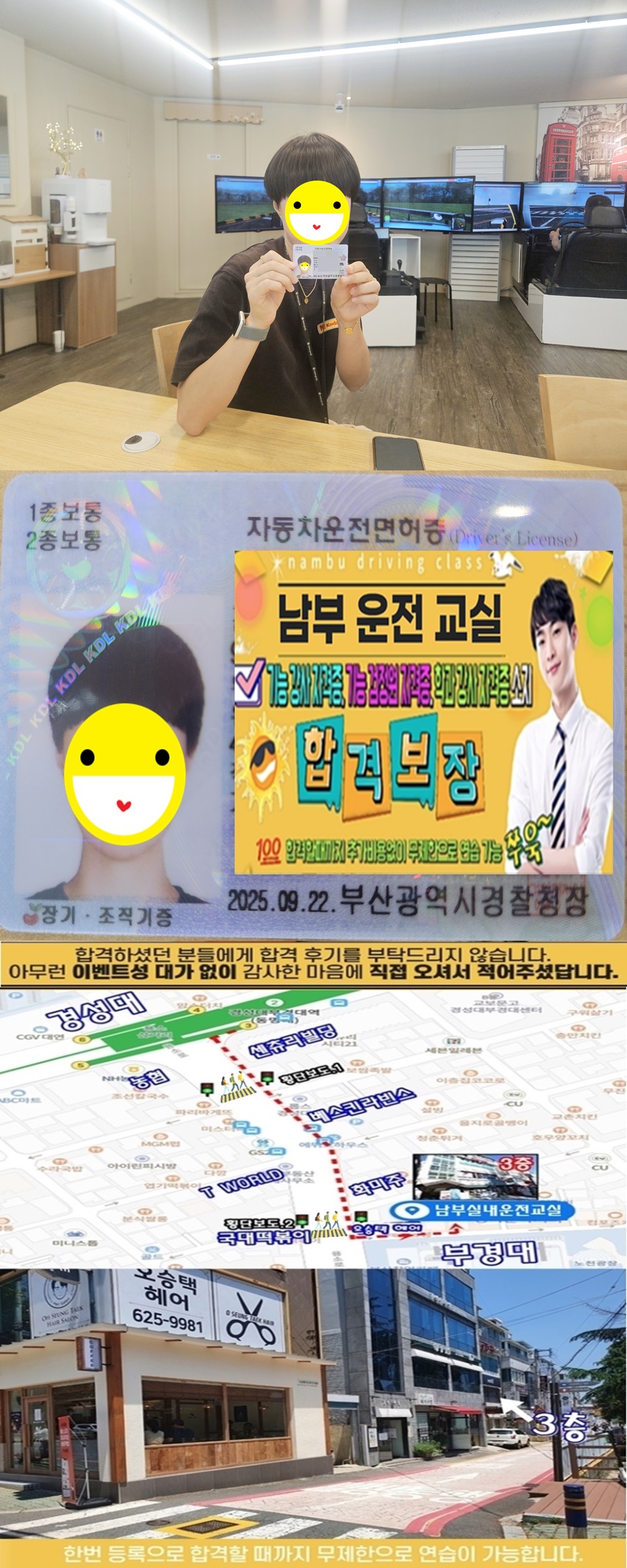 관리자 작성일어려운 1종 수동 운전을 묵묵히 열심히 연습하시던 모습이 기억에 생생합니다. 이제 더욱 멋진 일들이 기다리고 있을 것입니다. 합격을 진심으로 축하드립니다. ^^ 아무런 이벤트성 대가 없이 오직 고마운 마음으로만 적어주신 후기 소중히 간직하겠습니다.