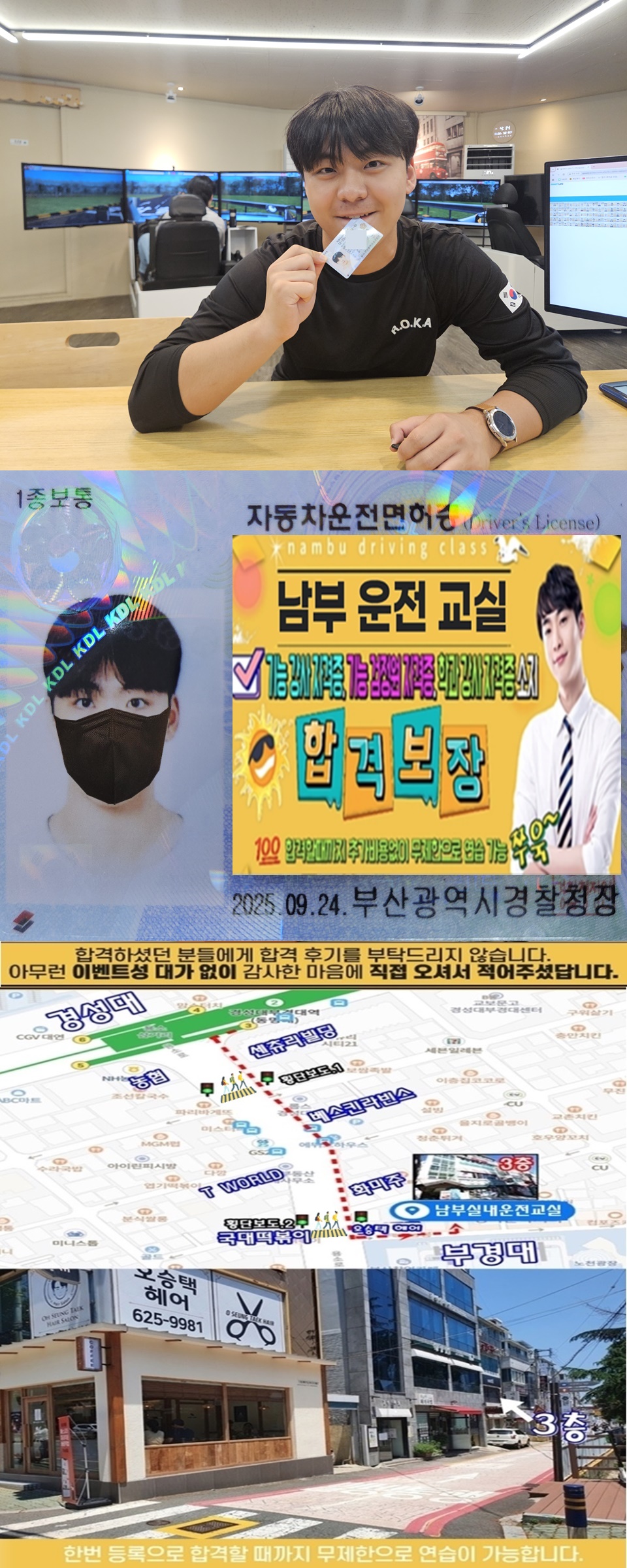 선생님의 열정과 가르침이 아주 훌륭하시고 모든 초보자분에게도 한결같이 한번에 취득 할 수 있게 도와주십니다 운전초보분들에게 강추드립니다
